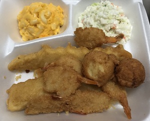 Served with 2 family sizes sides and hush puppies. Serves 3-4